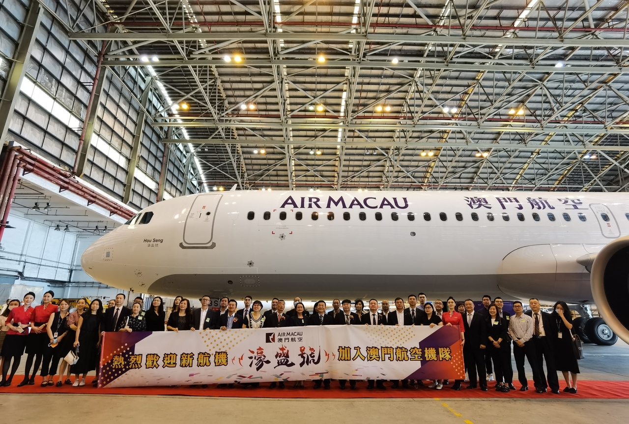 On 19th July 2021, Mr. Chu Tan Neng – Executive Director of Macau International Airport Company Limited (CAM) attended the celebrating ceremony of Air Macau’s brand new aircraft named “Hou Seng” at the Hangar of Macau International Airport. “Hou Seng” is the third Airbus A321neo aircraft introduced by Air Macau and its maiden flight from Macau to Beijing was also made on the same day after the ceremony.