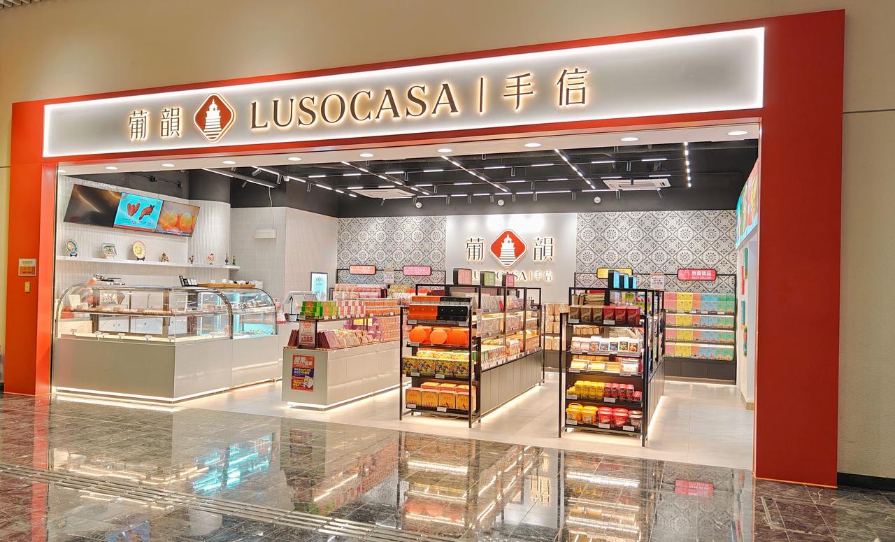 The “LUSOCASA” chain stores sell specific Macau souvenir products, offering traditional and festive gift items that integrate Chinese and Portuguese cultural characteristics. Additionally, it provides light refreshments such as milk tea, coffee, Portuguese tarts, pork chop buns, and other Macau specialty snack foods. Furthermore, the store also sells specialty gifts from other Macau brands, providing a last shopping opportunity to passengers before the journey or returning home.