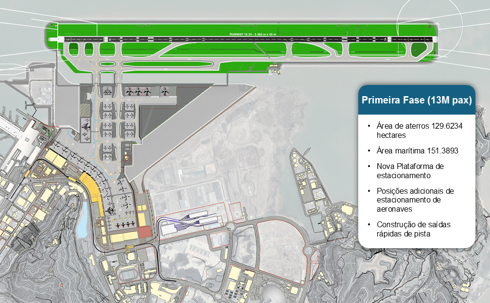 - Apresentou-se à Autoridade de Aviação Civil e às entidades deliberativas relevantes um plano básico do projecto de aterro.