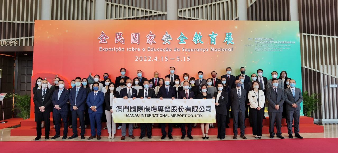 Macau International Airport always actively participates in social activities on national education. CAM has participated in every exhibition event since the 1st National Security Education Exhibition held in year 2018, which enriched staff’s understanding on the background and connotation of the holistic view of national security and strengthened their awareness of national security. With the accompany of Consultant of the Office of the Secretary for Security Ms. Wong Hong and Deputy Director of the Judicial Police Ms. Tou Sok Sam, Chairman of the Executive Committee of Macau International Airport Company Limited (CAM) Dr. Deng Jun, Executive Directors Mr. Kan Cheok Kuan, Mr. Lei Si Tai and Mr. Leung Henry Yee Hang led almost 50 company colleague and staff from Airport Information Management Solutions and SEMAC Security Company to visit the National Security Education Exhibition on 21st April 2022, which was co-organized by Macau SAR Government and Liaison Office of the Central People’s Government in the Macau SAR.