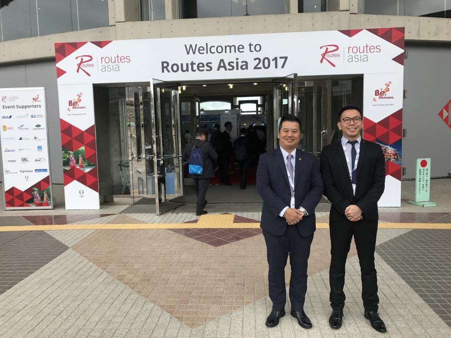 The 15th Routes Asia Forum organized by United Business Media Group and hosted by Okinawa Prefectural Government and Okinawa Convention & Visitors Bureau took place in Okinawa, Japan from 19th – 21st March, 2017. Representatives from Macau International Airport Co. Ltd. (CAM), Mr. Eric Fong, Director of Marketing Department and Mr. Daniel Lam, Manager of Marketing Department participated in the forum. The three-day forum attracted 930 route development professionals from 110 airlines, 170 airports and 20 tourism authorities. Routes Asia is one of the most important events in civil aviation industry, providing a professional and pragmatic platform for airports and airlines to seek cooperation for future route development.