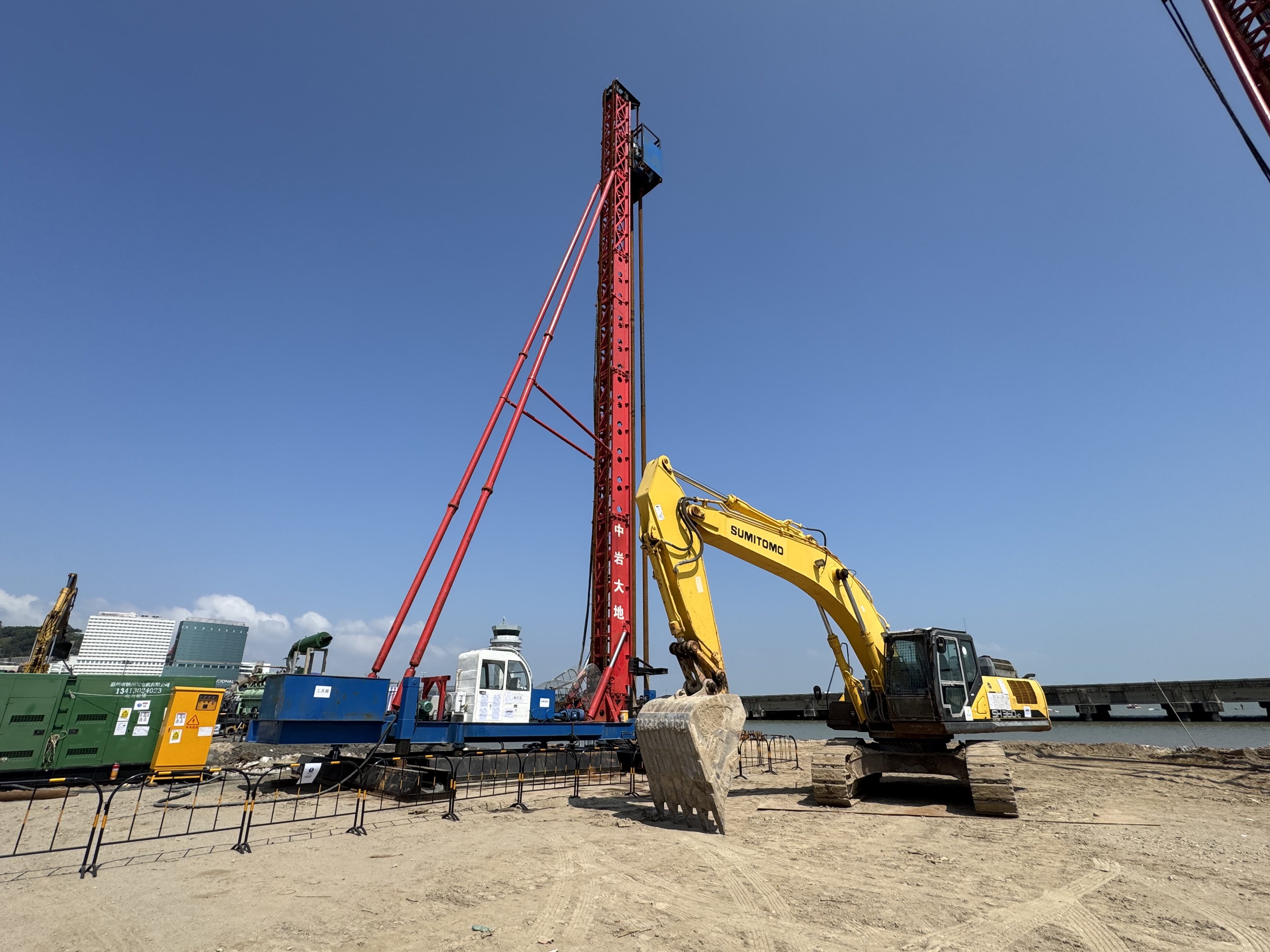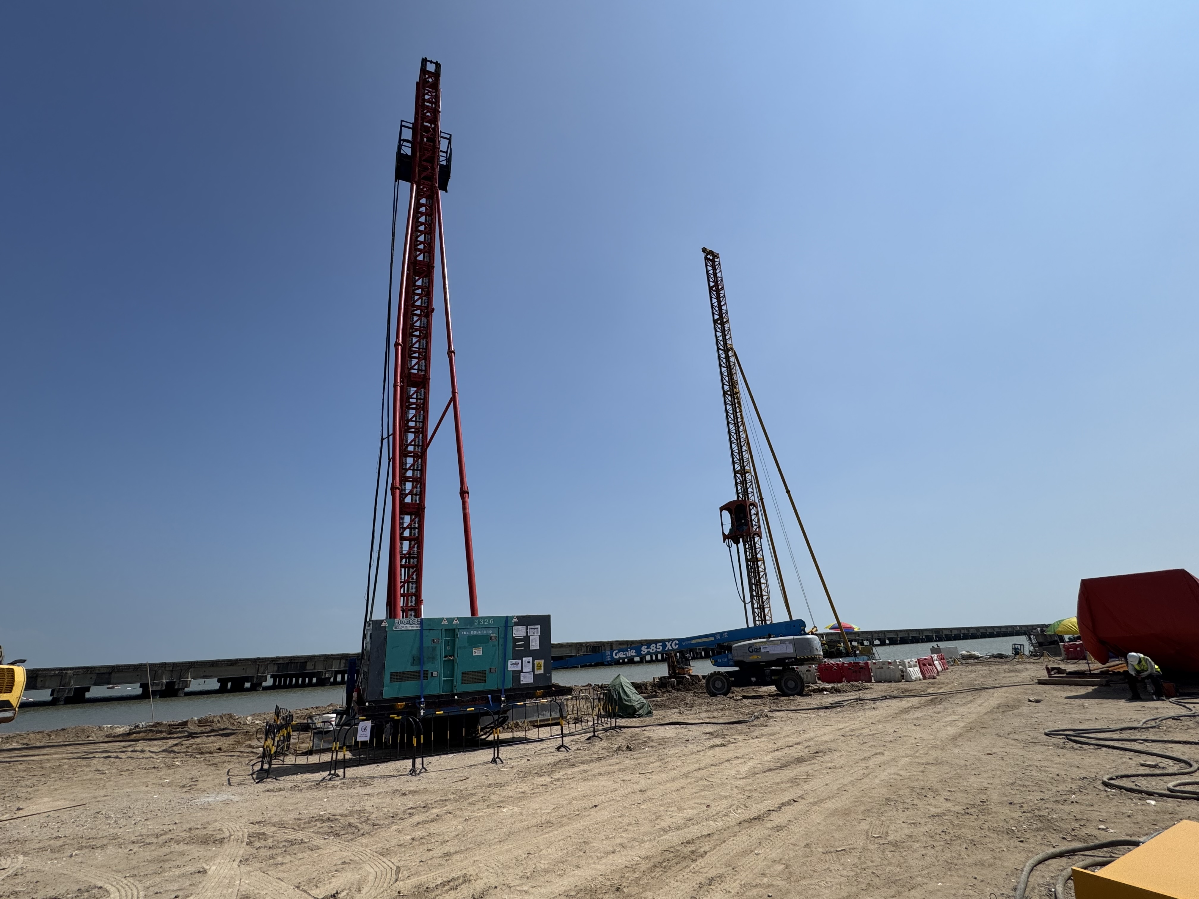 - 本次填海工程部份位置採用水泥攪拌樁軟基處理工藝,現正進行試驗樁的工藝及配比調試,以確保最佳加固效果,提供穩定的地基。