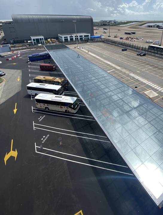 機場新的旅遊巴上落客區增設了全覆蓋的遮陽雨棚,為旅客提供遮陽擋雨的候車空間,同時行車路線重新規劃,提升了往來機場的車輛承載力及停車便利性。未來,機場將會規劃更多改善措施,務求為旅客提供更高效、便捷、愉快的出行體驗。