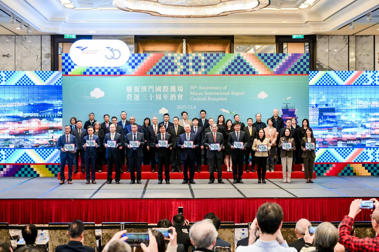 澳門國際機場專營股份有限公司(CAM)於2025年12月4日在澳門美獅美高梅隆重舉辦澳門國際機場營運30周年慶祝酒會。全國政協副主席何厚鏵先生、澳門特别行政區行政長官代表、運輸工務司司長譚偉文先生、CAM董事會主席馬有恆先生、中國民用航空局副局長馬兵先生、中聯辦經濟部副部長楊全州先生、外交部駐澳門特派員公署辦公室主任付愛民參贊等主禮嘉賓蒞臨現場,為酒會增添光彩,與近四百位來自全國人大代表、政協委員、友好機場、民航同業及本地知名人士齊聚一堂,共同見證這一歷史時刻。