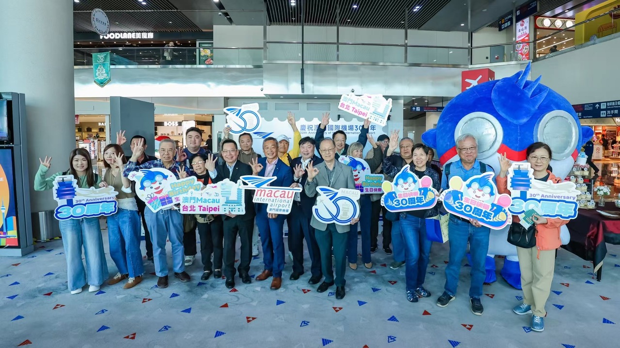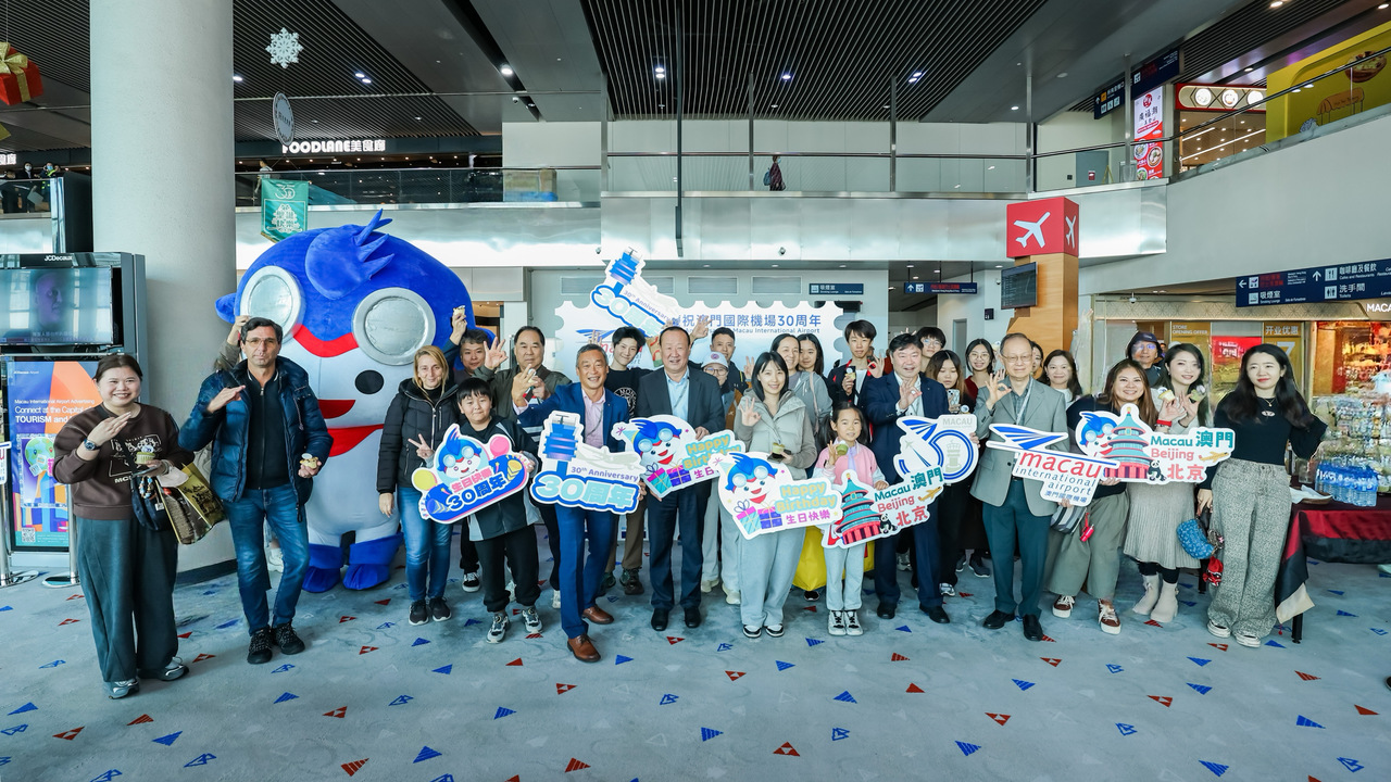 澳門國際機場(MIA)自1995年12月8日正式投入營運以來,始終肩負連接澳門與世界的重要使命。三十年間,機場見證了本地旅遊業與經濟的蓬勃發展,並成為推動區域商業及國際交流的重要樞紐。為慶祝這一里程碑及這特別的日子,澳門國際機場專營股份有限公司(CAM)於2025年12月8日舉辦特別慶祝活動,執行委員會主席陳穎雄先生、執行董事朱丹寧先生、李時泰先生,聯同澳門航空總經理吳立新先生及長榮航空澳門分公司客運課課長殷幹溪先生及機場主任林正維先生等長期合作夥伴代表共同出席。向三十年來支持機場發展的旅客致以誠摯感謝。